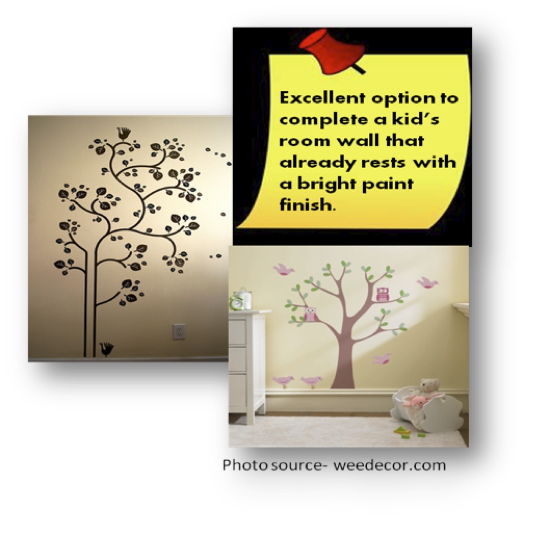 Wall decals give you a chance to create your own work of art. These fun and inexpensive forms of wall art are usually available at wall paper or lifestyle stores.